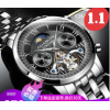 冠琴(GUANQIN)手表 男机械表全自动镂空陀飞轮 瑞士品质防水夜光皮带男士手表 双日历多功能腕表 名匠-本色黑面